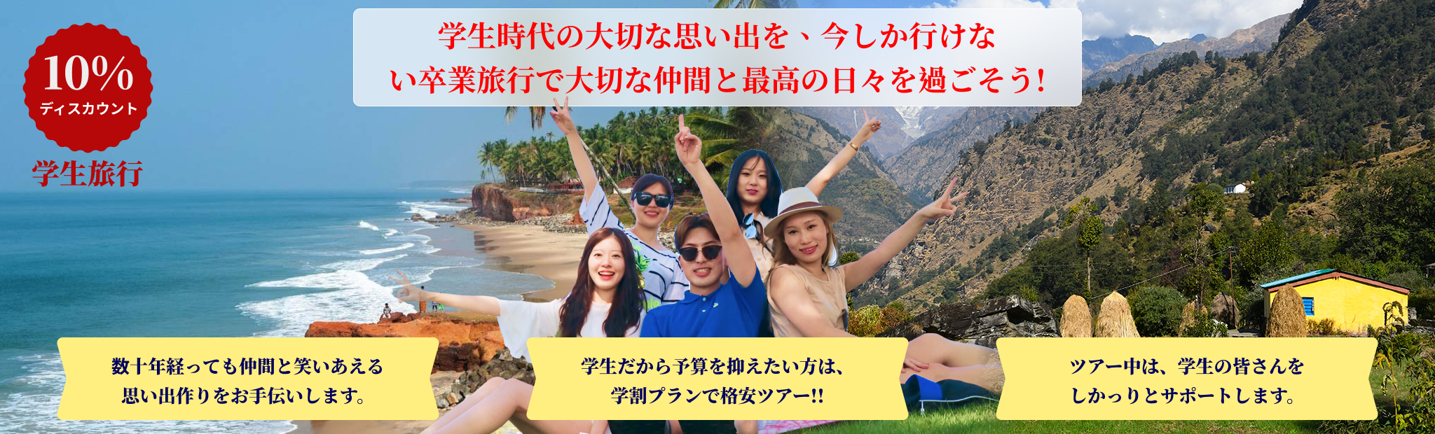 学生時代の大切な思い出を、今しか行けない卒業旅行・学生旅行で大切な仲間と最高の日々を過ごそう!