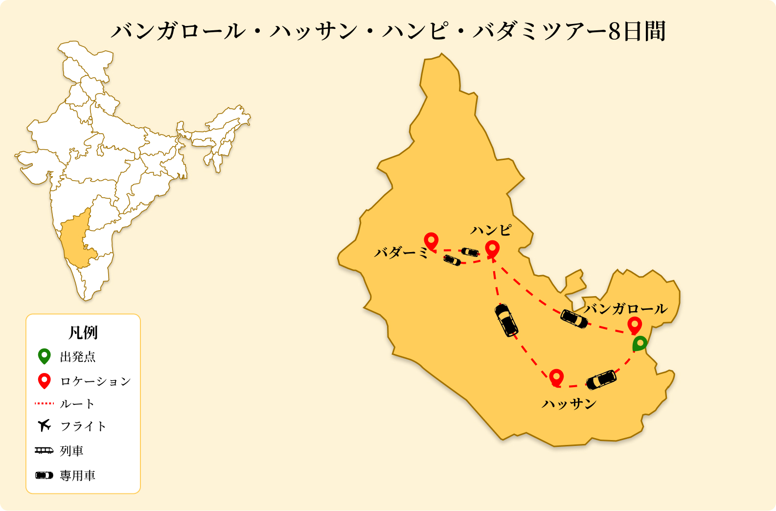 バンガロール・ハッサン・ハンピ・バダミツアー8日間
