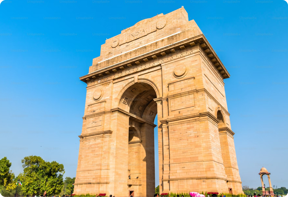 1929年に建てられた高さ42mの門柱。第1次世界大戦で戦死したインド兵の慰霊碑で1万3500万人の名前が刻まれています。独立記念日には各国の総理大臣も参加し、毎年盛大なパレードやイベントが行われています。永遠の火が一度も消えることなく永遠にともされています。付近には大統領官邸や国会議事堂が建ち並んでいます。夜にはライトアップされるので幻想的で現在では若者のデートスポットにもなっています。