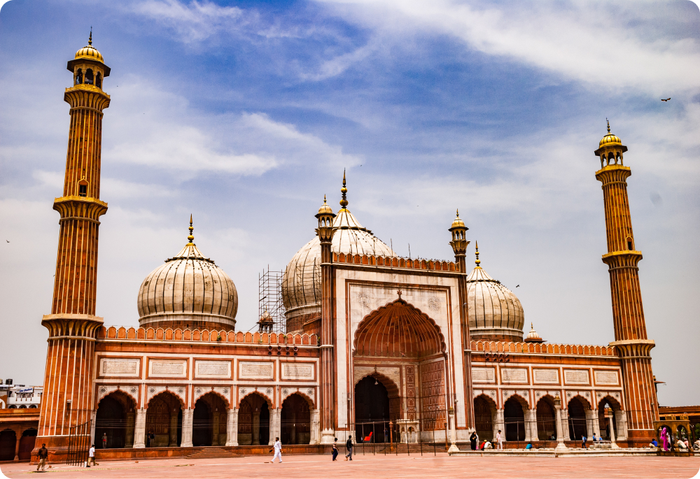 オールドデリーにあるインド最大のモスクです。シャージャハーンが立案し1656年に完成しました。赤砂岩と大理石を組み合わせて作られ、中庭も広大で25,000人が礼拝できます。高さ40mの尖塔は中の階段を行くとオールドデリーの街並みが見下ろせ、ラール・キラーの全貌も見られその大きさに驚きます。
