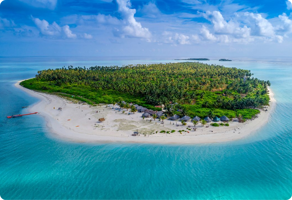 ラクシャドディープはモルディブのすぐ北に浮かぶ諸島で、観光客はあまり訪れないため、珊瑚の砂浜と透明な海を独占し、プライベートビーチのように満喫できます。