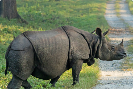 この希少なサイは、主にアッサム州のカジランガ国立公園に生息しています。厚い装甲のような皮膚と、黒くて立派な一本の角が特徴です。穏やかな性格で、草原や川の近くで草を食べている姿が見られます。一時は絶滅の危機に瀕していましたが、保護活動によって数が回復しました。その原始的な姿を間近で見る体験はまさに感動的で、インド野生動物の象徴的存在です。